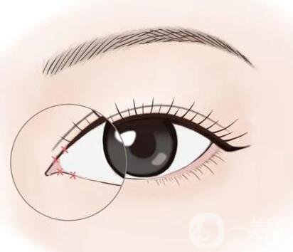 開(kāi)眼角:開(kāi)眼角分為開(kāi)內(nèi)眥和開(kāi)眼角。開(kāi)眼角是在眼尾的外層皮膚做一個(gè)切口,使外眼角橫向變寬。擴(kuò)大分裂的內(nèi)眥并不是真的打開(kāi)內(nèi)眥,而是打開(kāi)內(nèi)眥前面的內(nèi)眥贅皮,露出內(nèi)眥結(jié)構(gòu)。這里主要討論的是眼睛的外角。