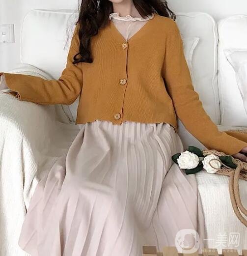 在搭配過膝半身裙和針織開衫時(shí),可以利用短長結(jié)合的方式來修飾身材比例。比如短小的上衣搭配過膝半身裙,可以營造出腿部線條修長的視覺效果。而長款上衣則可以遮擋大腿、小腿的一些粗壯感。